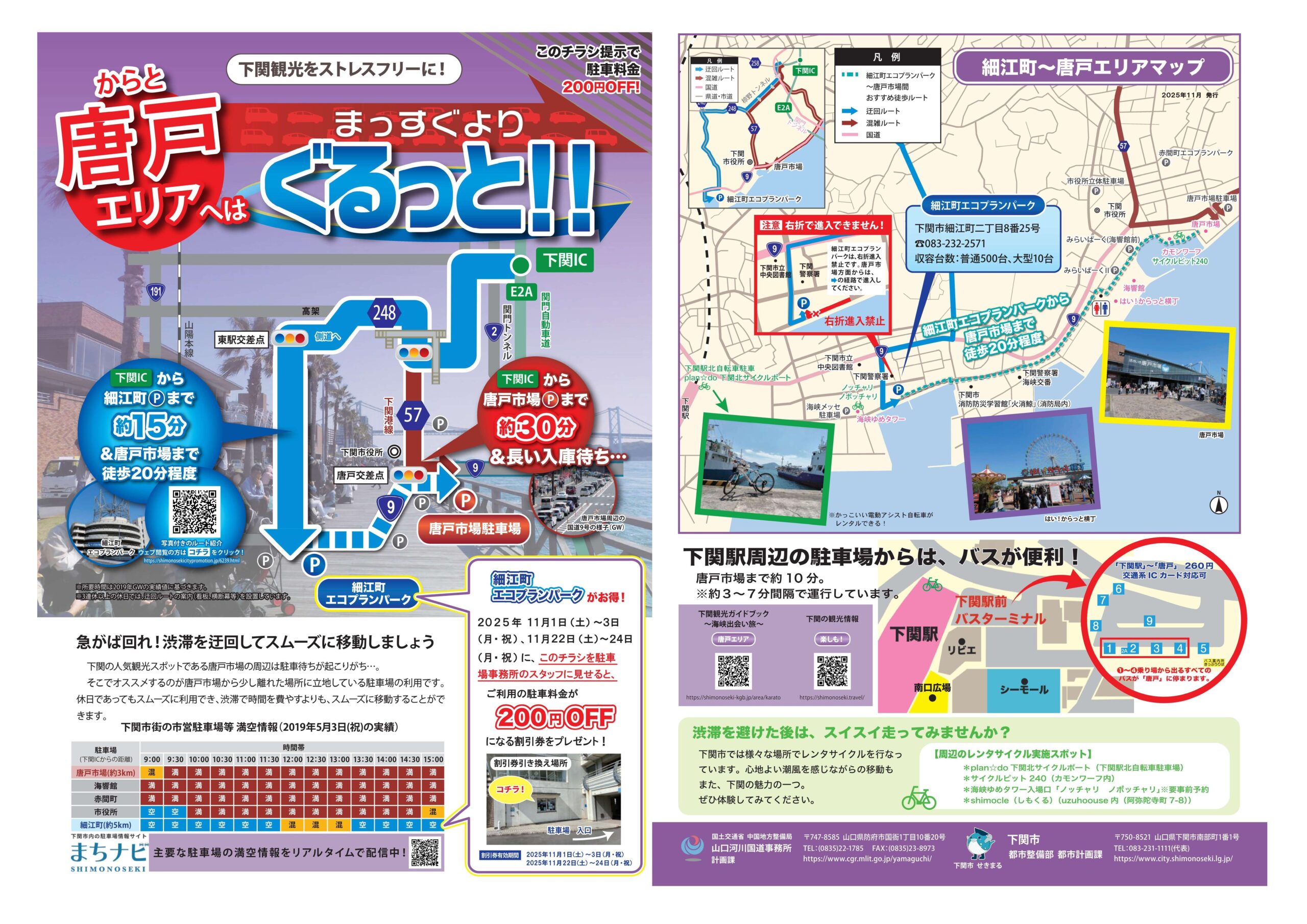 この度、国土交通省と下関市が連携して細江町エコプランパークの利用促進チラシ『唐戸エリアへはまっすぐよりぐるっと!!』を作成しました。